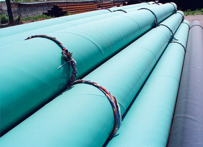 熔結(jié)環(huán)氧粉末外涂層(FBE/2FBE)是近30年來發(fā)展起來的新型防腐層,F(xiàn)BE涂層有單層和雙層兩種。所謂FBE涂層一般指單層熔結(jié)環(huán)氧涂層。單層FBE涂層采用專用的熔結(jié)環(huán)氧粉末涂料作為成膜材料。采用靜電噴涂工藝涂敷環(huán)氧粉末涂料,一次成膜。這種環(huán)氧粉末涂料是一種熱固性涂料,由固態(tài)環(huán)氧樹脂、固化劑及多種助劑經(jīng)混煉和粉碎加工而成。鋼管在噴漆前先經(jīng)過拋丸處理和中頻預熱,再采用靜電噴涂方法將環(huán)氧粉末涂料噴涂在加熱的鋼管表面上,熔融粘結(jié)在鋼管表面,固化形成涂層。FBE涂層一般一般為一次成膜結(jié)構(gòu).。FBE涂層有對鋼鐵粘結(jié)力強、膜完整性好、耐陰極剝離、耐土壤應力和耐磨損、涂敷操作簡單、無污染、涂層抗沖擊和抗彎曲性能好、耐溫性高等優(yōu)點,在國外得到了廣泛的應用。FBE涂層可用于工作溫度為-30o―100o的鋼制埋地管道或水下管道設施的外防腐